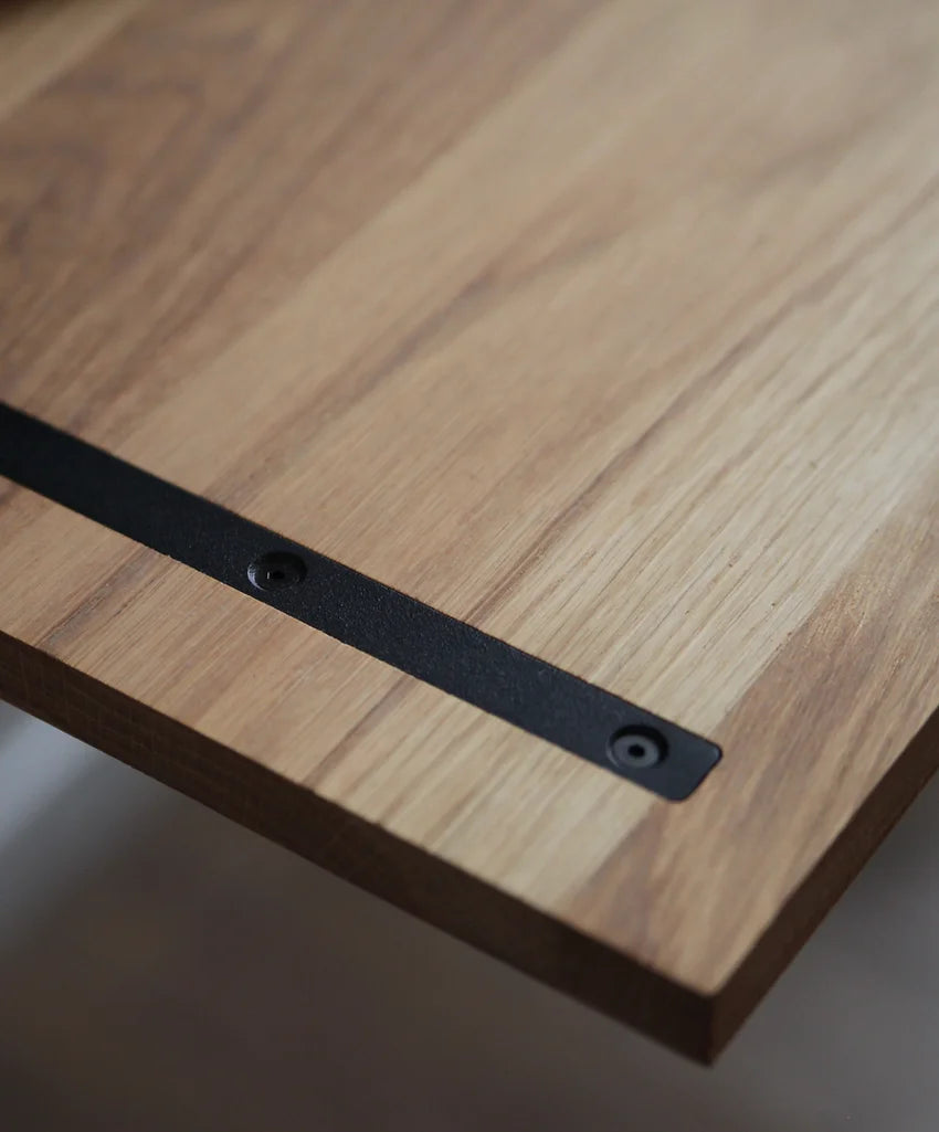 Pour favoriser la meilleure tenue dans le temps possible les abattants reçoivent des renforts en acier laqués spécialement usinés pour chacun de nos meubles et fabriqués en France à moins de 400km de notre atelier.